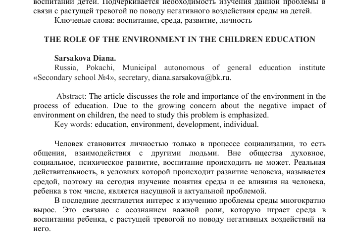 Влияние образовательной среды на воспитание